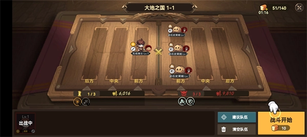 战斗前要先规划好自己的作战队伍,部署妥当后点击战斗即可开始。