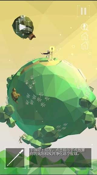 4、只是把权杖放上去是不能通关的,还需要不断地调整角度来改变权杖面向的方向,只有很好的反射了太阳光才能够过关,让星球恢复活力。