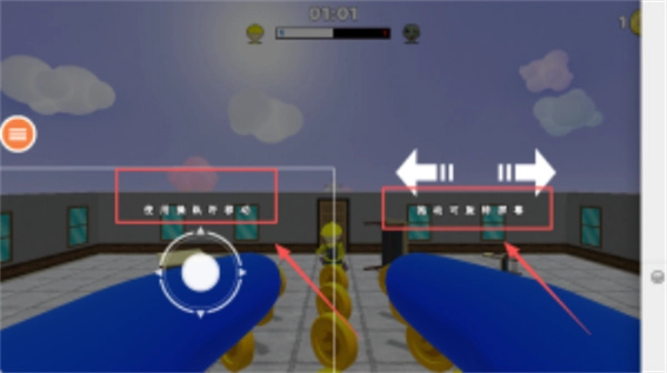 游戏开始后,你可以通过底部的白色摇杆来操控角色移动;同时,请按照红色框内的提示滑动屏幕,以此完成瞄准和射击操作;另外,还要留意左上角的倒计时。