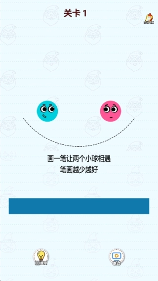 这是一款以画线为核心玩法的解谜闯关游戏,玩家需要在特定限制条件下描绘路径,让红蓝两球落地后能够准确地相互触碰。