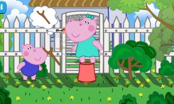 进入游戏后,首先引导孩子熟悉河马和吉的角色设定以及剧情背景,帮助孩子理解寻找妈妈旧洋娃娃这一核心目标,以此激发他们的参与感。