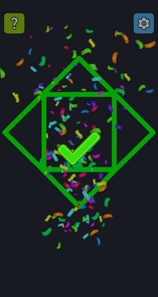当屏幕上显示绿色对勾并伴有彩色碎片特效时,意味着当前关卡已顺利通过,此时只需等待界面自动切换至下一关,不需要进行其他额外操作。