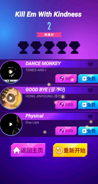 你可以从难度循序渐进的多个曲库中挑选歌曲发起挑战,完成挑战后就能解锁新的歌曲以及游戏模式。