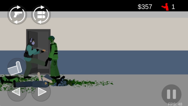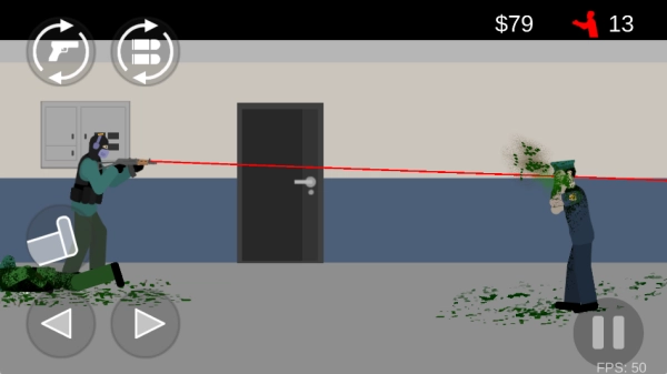 在走廊模式玩法里,左侧方向按键用来操控角色前后移动,右侧按键负责控制射击;而且射击敌人不同部位时,获得的金钱数量和造成的伤害程度都会有所差异。