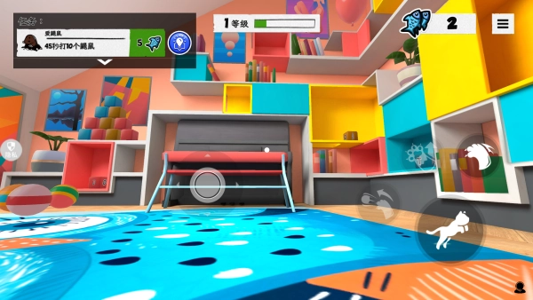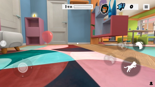 进入游戏,滑动虚拟摇杆控制猫咪在房间当中探索。