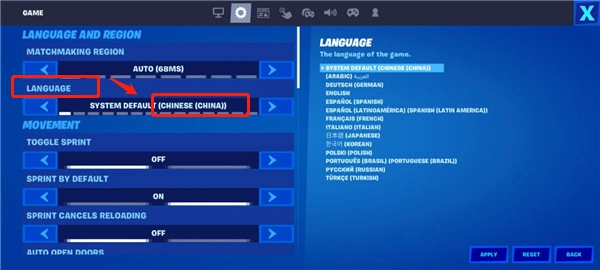 堡垒之夜正版怎么设置中文?