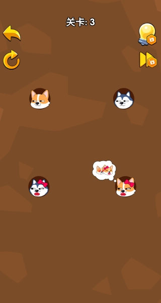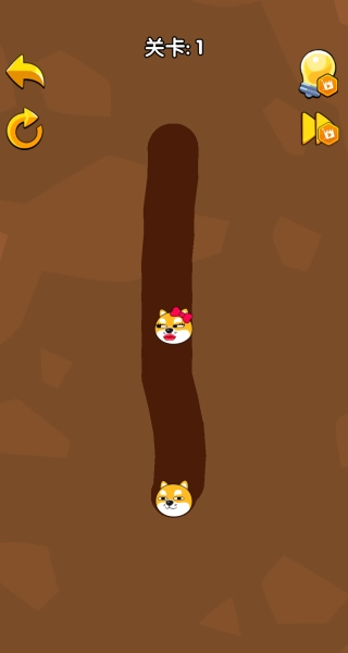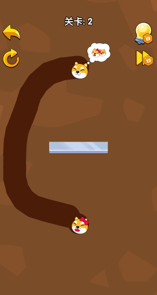 当通道成功挖通后,两只狗蛋会自动顺着通道朝对方走去,开心地相遇,这时就意味着关卡挑战成功了。