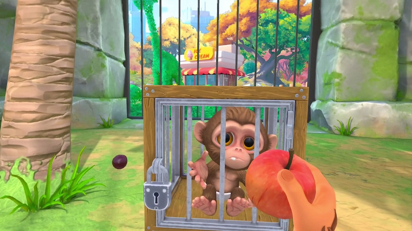 1.动态互动系统:基于物理引擎的抓取、摆荡、投掷机制,允许玩家用香蕉击中游客相机、用树枝撬开饲料箱,甚至偷走管理员钥匙,每个动作均产生真实物理反馈,如物体坠落轨迹、角色受力表现等。