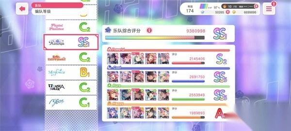 6、得分评级,最高ss,最低c。