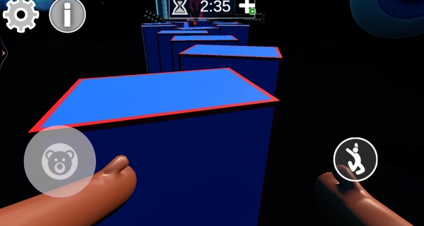 通过虚拟摇杆控制小熊的移动方向,配合跳跃动作来越过台阶、避开陷阱,在规定时间内尽可能推进关卡进度。