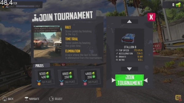 完成赛事获取奖励,解锁新车辆并升级现有座驾。