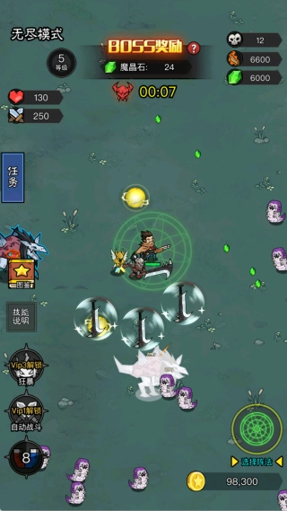 通过击败怪物来获取经验值和各类资源,角色升级后会出现随机的强化选项,从中选择合适的增益效果,就能即时增强战斗方面的能力。