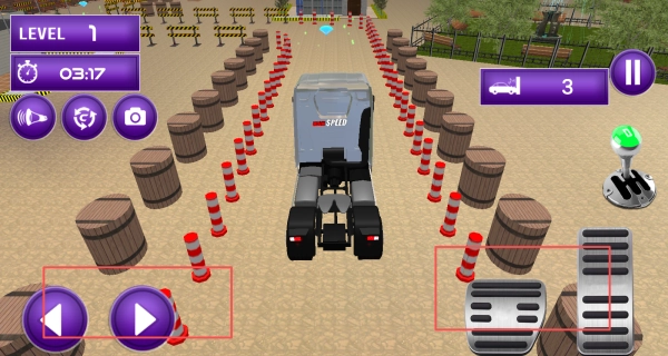 驾驶过程中,转向主要依靠左侧的左右方向键来操控,同时结合右侧的油门和刹车键,以此实现对车速的调节以及车辆的停靠。