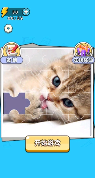 启动游戏后,映入眼帘的是一只萌萌的猫咪正酣睡的场景,点击“开始游戏”按钮即可进入游戏界面。