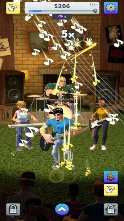 音乐大亨是一个有趣的模拟游戏,在游戏中你可以组成一个乐队,带领你的乐队去世界演出,乐队成员可以通过招募的方式去获取,检验每个成员的天资和潜力,游戏收录着各种各样的歌曲,你可以通过点击和滑动的方式去收货收益,通过音乐来获得最大的收益。