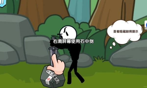 查看隐藏的剧情提示,同时右滑屏幕使用石中剑。