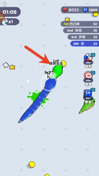 进入游戏后,你会从一条一级的小蛇起步,通过滑动屏幕来操控它移动,主动吃掉地图上的豆豆,以此积累经验、提高等级并让身体变长。