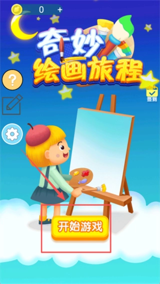 进入游戏主界面后,当看到那个戴着红色帽子的小女孩时,点击她面前那个黄色的“开始游戏”按钮,这样就能进入绘画模式了。