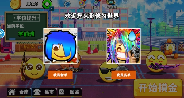 选择新手或者高手,进入修勾世界,进行校园摸金。