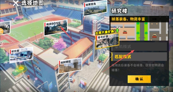 进入游戏后,选择对峙前线这张地图,重点去探索教学楼、图书馆这类物品较多的区域,搜寻那些高价值的物品来积累资源。