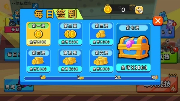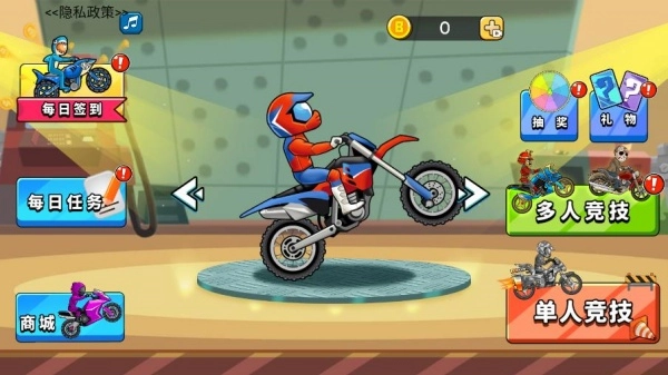 每天坚持签到获取免费金币,先把基础摩托车解锁了,再升级加速、刹车这些性能部件,提升赛车的竞争力,为之后的挑战打好基础。