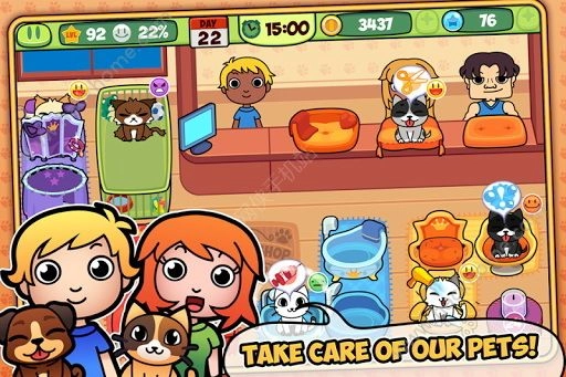 我的虚拟宠物店游戏中你将变身为宠物店的主人,可爱的小家伙们需要你的照顾,帮助它们的主人来打理它们,根据游戏中的提示来帮助这些家伙进行打理来获得收入用来解锁新的道具升级你的宠物店!