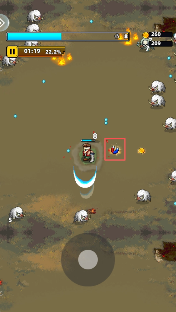 5、地图中还会随机刷新宝箱和特殊道具,例如“吸铁石”可以将场景内散落的能量快速吸附,而宝箱则可能开出新技能或金币奖励,别错过。