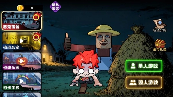进入游戏后挑选合适的模式,部分场景需要观看视频来解锁,解锁完成后就能开启对应场景的恐怖逃生挑战。