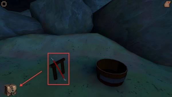2、接着在场景中,依据箭头指引,把木架处的道具放进背包中,为后续解谜做准备。