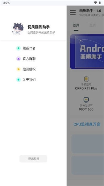 1、把悦风画质助手安装到手机上后,点击进入主界面;