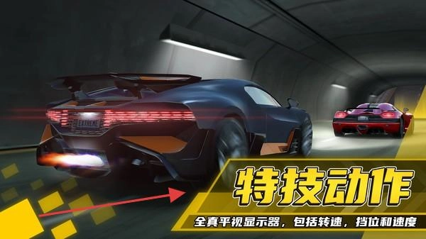 开放世界中避开往来车流,畅享自由驾驶的乐趣;特技模式下,可在隧道或环形道等特定地形中,借助地势完成翻转、加速等酷炫特技动作。