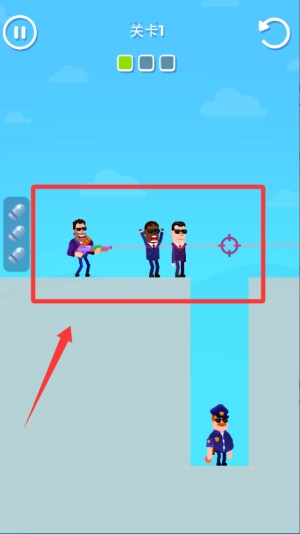 视觉风格简约而独特,运用高对比度的剪影设计,红色的目标与蓝色的人质得以清晰区分。动态光影效果提升了场景的层次感,子弹时间的特写则让关键射击更具冲击力。