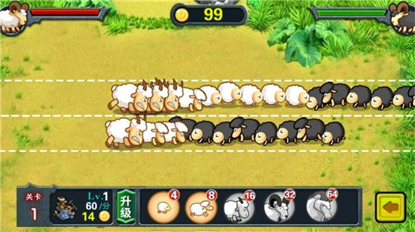 2、只有金币足够,白山羊由灰变亮,才能参与战斗;