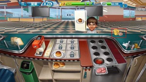 6、用营业赚取的金币升级厨具、食物和饮料,后期还能解锁新物品,记得攒金币购买。