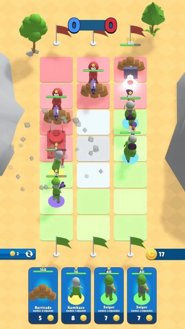 2、收集游戏中的各种士兵,组队进行1v1对战。