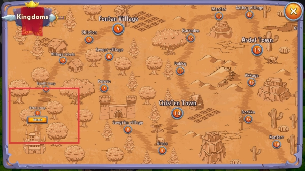 在世界地图上选定红框标注的【Altea】王国,派遣军队对其发起占领行动,以此来拓展我方领地范围,夺取该区域的资源点,进而提升王国的整体实力。