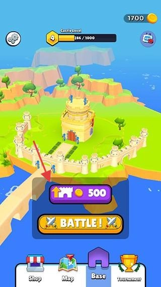 点击“BATTLE!”按钮,即可进入对战地图。在地图中,你需要操控己方士兵,朝着敌方塔楼发起进攻,以此争夺领地和资源,与此同时,还得做好己方塔楼的防守工作。