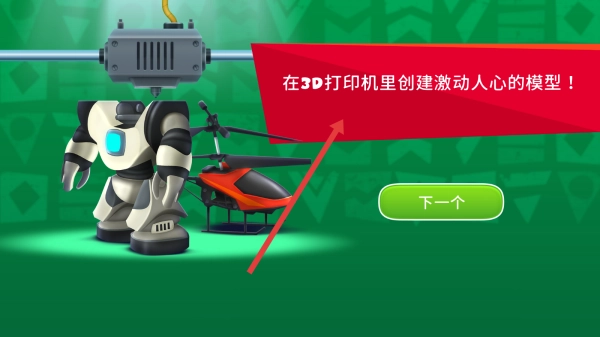 继续点击【下一个】按钮,解锁3D打印的功能,进而创建模型,为角色和道具进行升级,以此增强战斗能力。