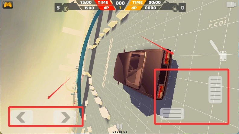 进入游戏后,点击左下角的按键能够操控汽车的方向,而右侧的按键分别对应油门和刹车。