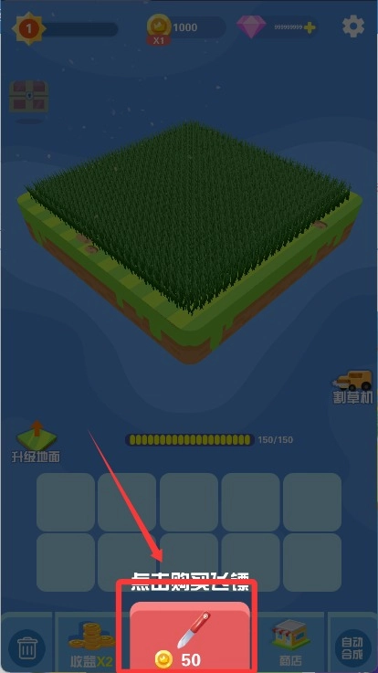 完成目标后前往商店,用金币提升武器威力、割草机速度和稻草单价,也能使用钻石购买稀有皮肤,助力下一轮割草更高效。