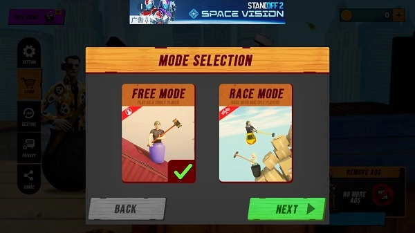 点击“START”便会弹出模式选项,FREE MODE指的便是单人模式;RACE MODE指的便是多人竞技。