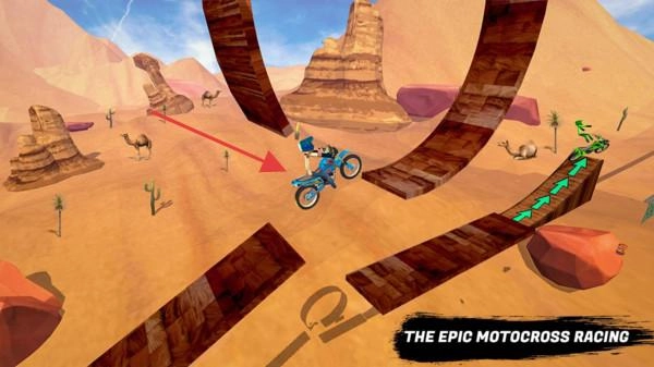 参与“EPIC MOTOCROSS RACING”赛事,驰骋于沙漠赛道之上,跨越环形坡道等各类障碍,展开一场竞速与特技的精彩比拼。