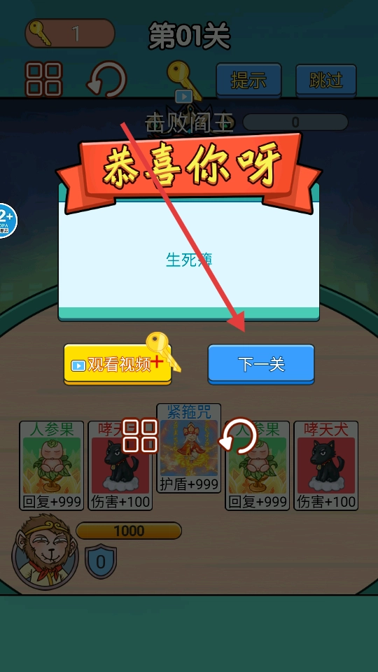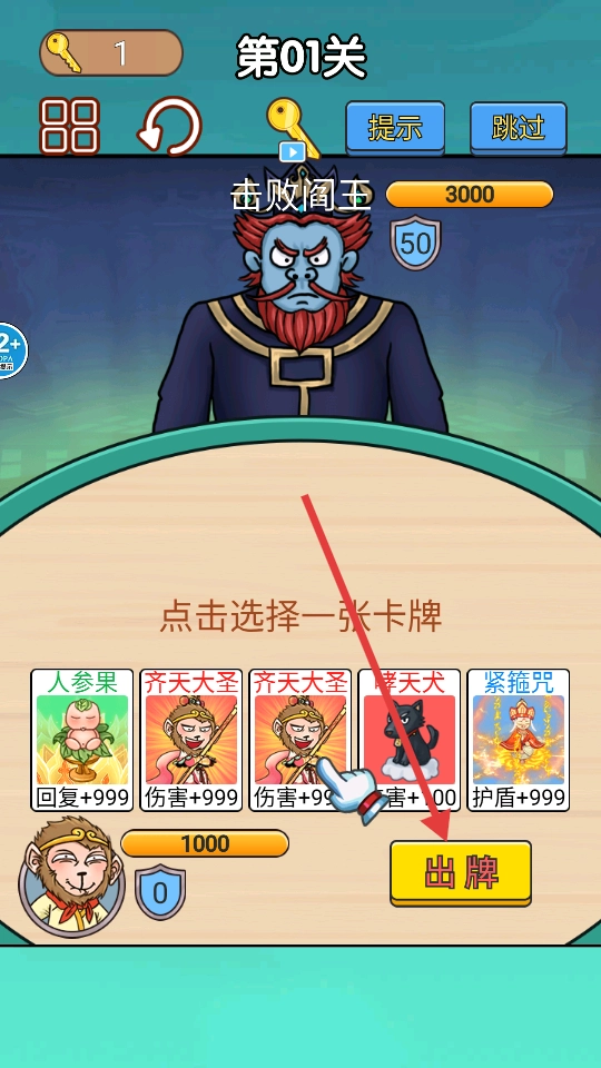 遇到妖怪别慌,点击卡牌召唤八戒沙僧群殴他们。