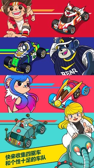 收录造型各异的四驱赛车,每辆赛车都拥有独特的性能参数和改装潜力,可以自由搭配组合,打造属于自己的冠军车队。