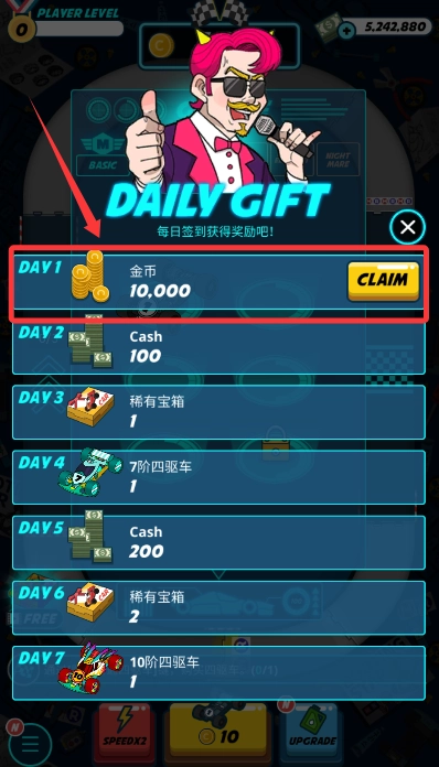 每天第一次登录系统会自动赠送金币奖励,这些金币可以用来提升赛车的性能,也能解锁全新的配件。