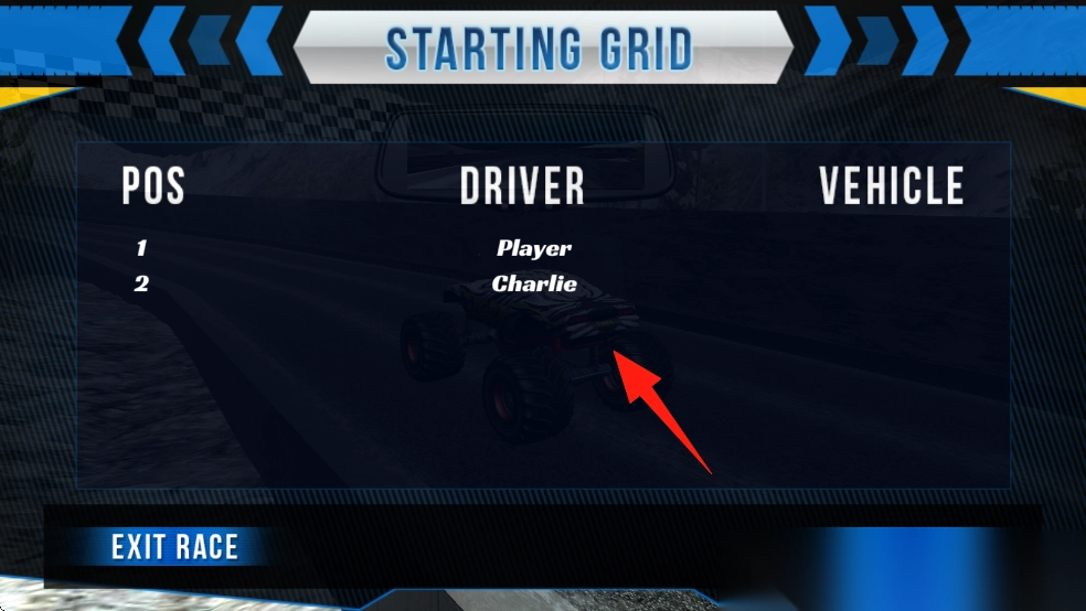 选好卡车后,进入起跑网格,确认与对手的位置,点击“START RACE”按钮开始竞速。