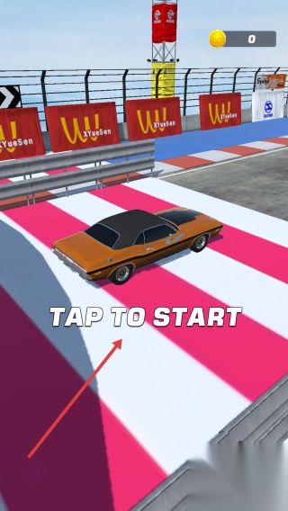 点击【TAP TO START】按钮,驾驶橙色赛车从起点出发,开启下坡竞速之旅。