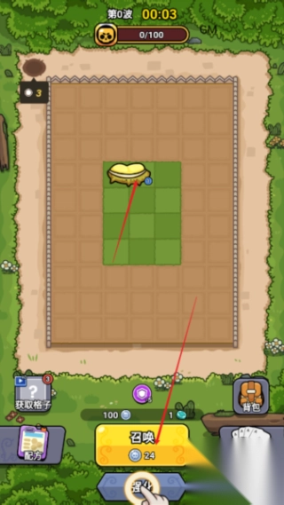 植物召唤机制:在空地上,消耗阳光资源,点击“召唤”按钮,即可布置具有攻击能力的植物。
