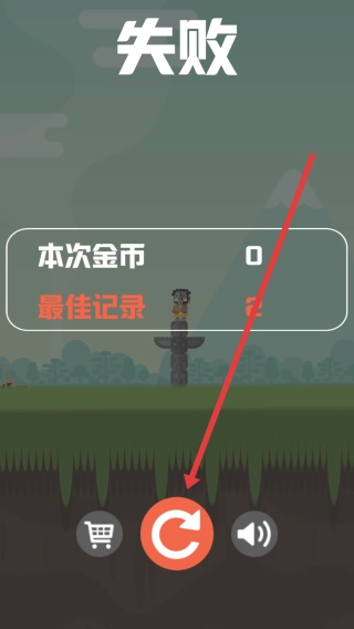 要是挑战没成功,在失败的界面上,点击那个红色的重玩按钮,就能重新进入关卡,再试着去射中目标。