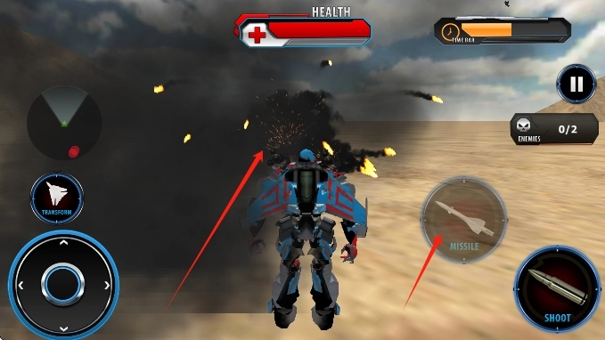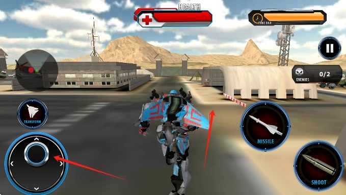 驾驶初始变形战机进入训练关卡,在空战场完成首次俯冲轰炸,体验战机变形成机器人的瞬间切换。